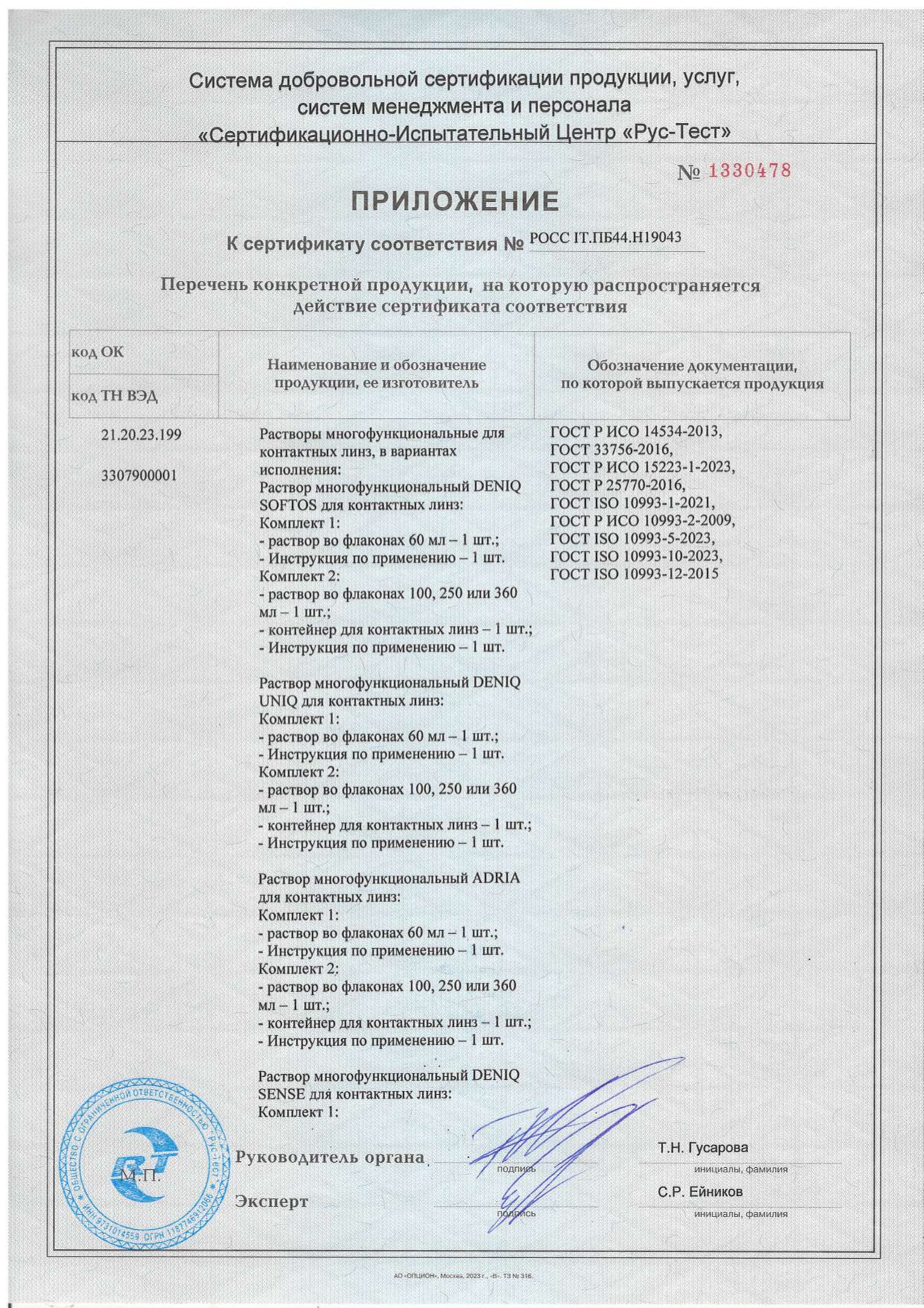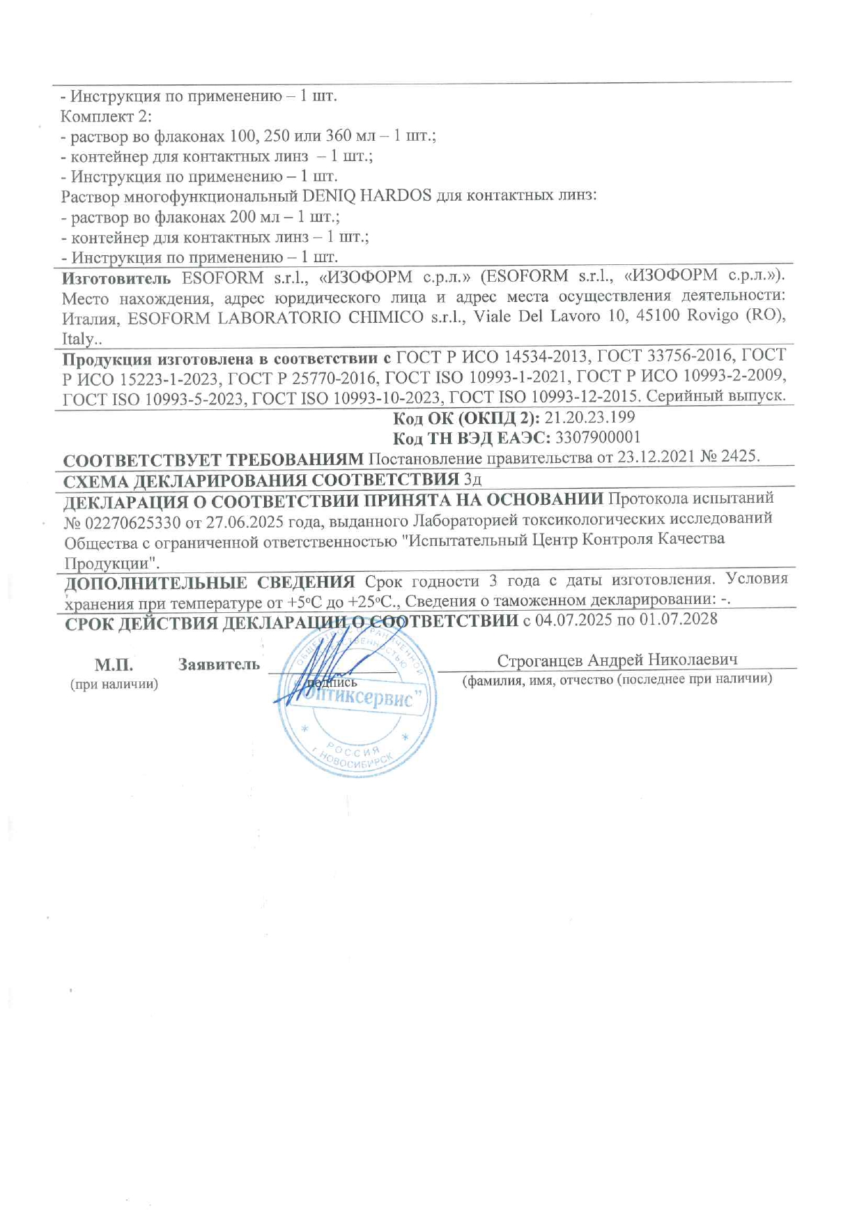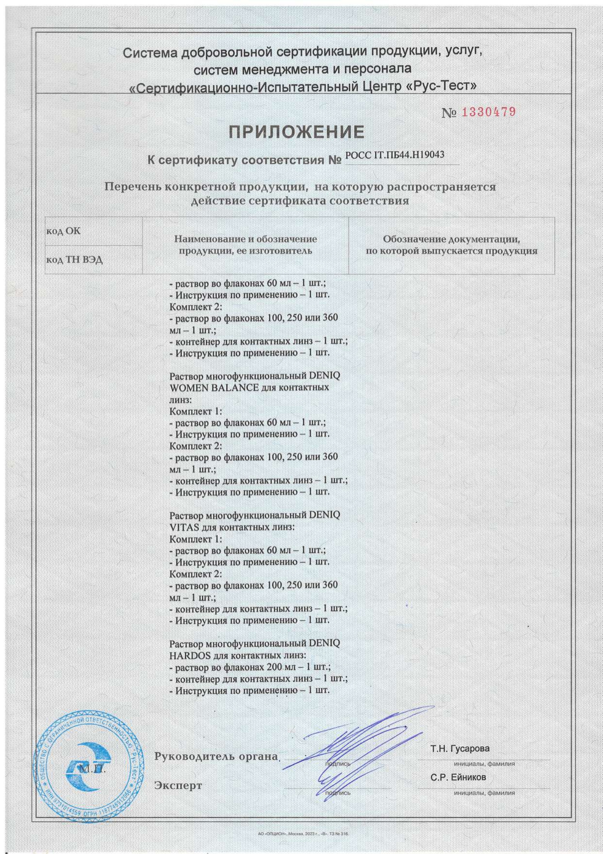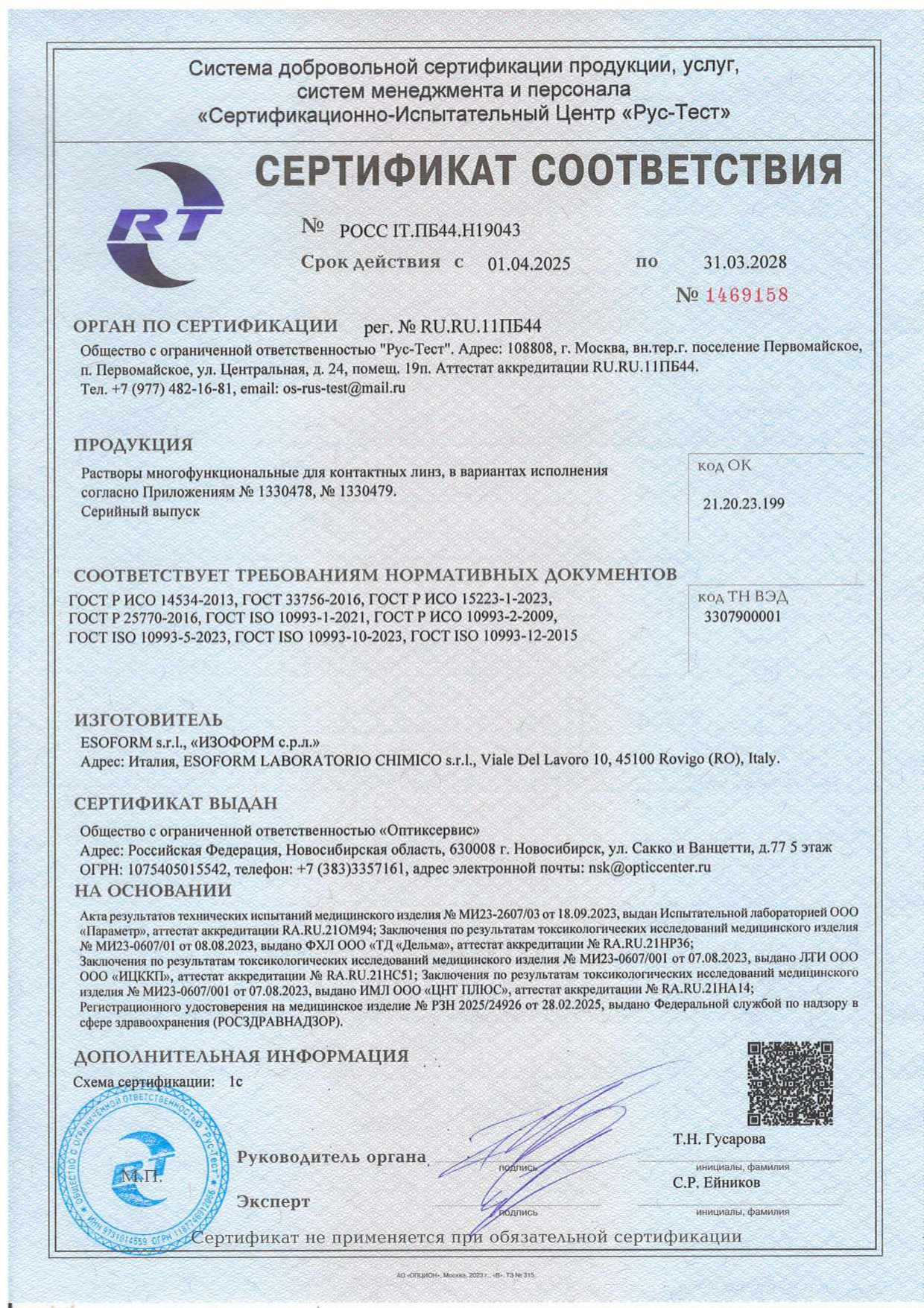 Сертификаты на товар